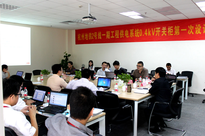 此次會議就杭州地鐵2號線一期工程概況以及系統(tǒng)概況,進行了詳細闡述,并對本次設(shè)計聯(lián)絡(luò)會所提供的產(chǎn)品設(shè)計圖紙及技術(shù)資料做了仔細審查和確認(rèn),確定了0.4kV開關(guān)柜設(shè)計方案和基本技術(shù)參數(shù)。與會各方并對下階段的工作做了計劃和布置。