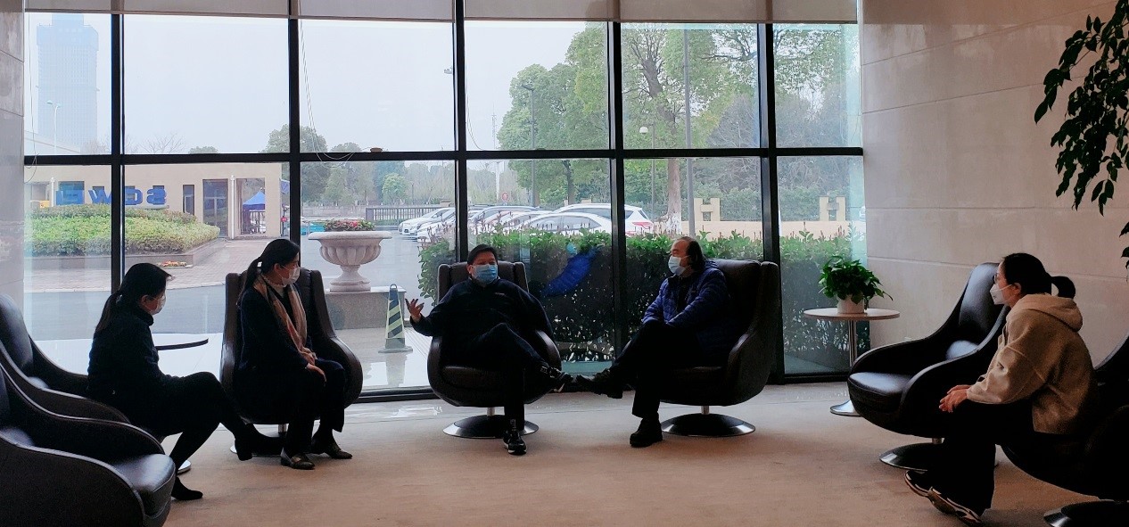 在公司門口檢查處,姜秘書長一行嚴(yán)格遵守疫情管控管理,逐一進(jìn)行了體溫檢測(cè)后方才進(jìn)入公司。碩維董事長劉洪爐對(duì)姜秘書長一行的到來表示熱烈歡迎,雙方見面時(shí)由往日緊密的握手問好改為雙手抱拳作揖,在特殊時(shí)期避免了肢體上的接觸。