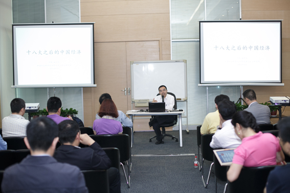 擇日不如撞日,今天,迎來一批重要的客人,來自清華EMBA2010F班的師生,并邀請到了時任中國社會科學(xué)院世界經(jīng)濟(jì)與政治研究所副所長,研究員,博士生導(dǎo)師,中央二臺《金融風(fēng)暴》著名主持嘉賓,何帆教授,演講《十八大之后的中國經(jīng)濟(jì)》, 為今天展廳的開幕增添了喜慶之光。