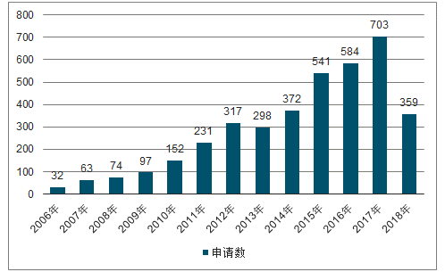 經(jīng)過多年的發(fā)展,我國低壓配電柜行業(yè)已經(jīng)從最初的容量小、性能低、功能少、體積大逐漸向性能好、體積 小、智能化的方向發(fā)展,逐漸形成較為完善的體系。從低壓配電柜的技術專利情況看,截止至目前,其共申請專利 4010項,以實用新型和發(fā)明專利為主,其中實用新型專利2654項,占專利申請總量的66.18%,發(fā)明專利1025項。從分年度行業(yè)專利申請數(shù)量看,2016-2018年低壓配電柜的專利申請數(shù)量總體不斷增加。至2018年,受行業(yè) 相對成熟及技術穩(wěn)定等因素的影響,低壓配電柜當年僅提供359項專利申請。