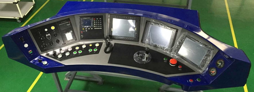 司控臺(tái)每列車配備兩臺(tái),各安裝在列車的頭、尾部,是列車的運(yùn)行模塊集成,由中央控制器、司機(jī)控制器、指示燈模塊和各個(gè)監(jiān)控終端組成,控制列車運(yùn)行。