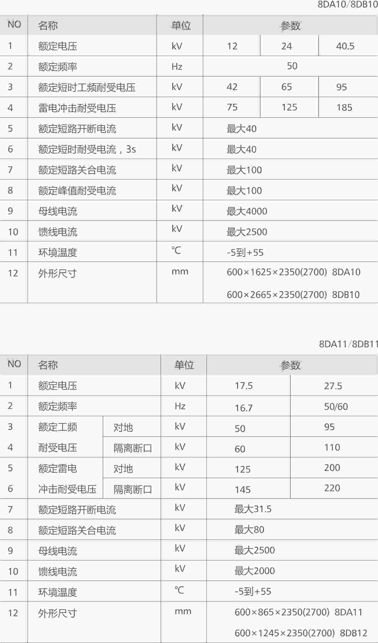 8DA/8DB 系列中壓開關(guān)柜是SF6氣體絕緣的戶內(nèi)安裝設(shè)備,配固定安裝真空斷路器,額定電壓到40.5kV,設(shè)計(jì)緊湊,免維護(hù)。8DA10用于單母線系統(tǒng)的應(yīng)用場(chǎng)合;8DB10用于雙母線系統(tǒng)的應(yīng)用場(chǎng)合;8DA11、8DB12 (單極和雙極設(shè)計(jì))用于鐵路牽引供電系統(tǒng)的應(yīng)用場(chǎng)合。